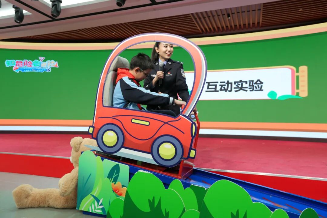 在安全带碰撞实验中,不系安全带的小熊玩偶从座位上飞了出去,系好安全带的同学则稳稳坐在座位中;而系着安全带抱着小熊的同学,在碰撞发生时,玩偶也脱手而出。可见乘坐汽车一定要系好安全带,不要怀抱小孩。现场的同学们通过亲眼所见、亲身参与实验,切实体会到了“系好安全带”的重要性。