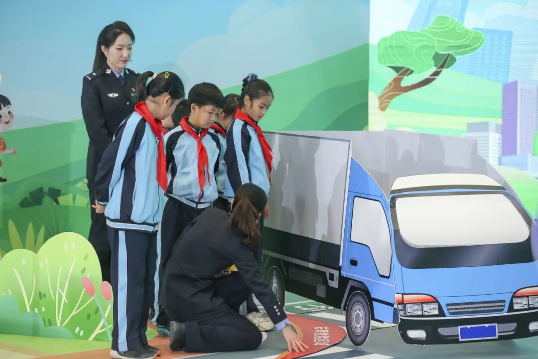 白千如、王佳乐两位警官还为同学们讲解了什么是“车辆盲区”。同学们以情景剧的形式再现了“骑电动车发生交通事故”的真实案例,并以“模拟庭审”让大家了解了发生交通事故的严重后果。