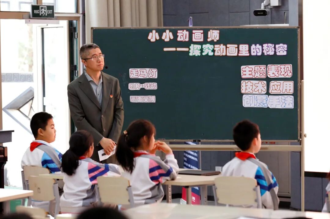 研讨会第二阶段——影视课堂教学观摩,共有六个分会场。礼堂内播放博纳影业集团提供的最新影片《蛟龙行动》,教学观摩课也同步进行。科技课《从走马灯到AI:动画技术进化论》、光影阅读课《〈大闹天宫〉——动画与文本的奇妙对比》、生命教育课《浇灌生命中的小红花》等围绕影视德育的主题课堂,深入浅出地引导学生领悟影视中深藏的家国情怀,激发其深度的思考和讨论。