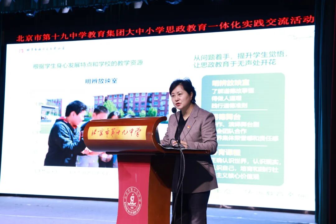 3月18日,大中小学思政教育一体化实践交流活动在北京市第十九中学举行。活动以“聚焦大思政多元实践,提高引领力培根铸魂”为主题,吸引了区内外众多科研院所及大中小学的领导与教师前来观摩。