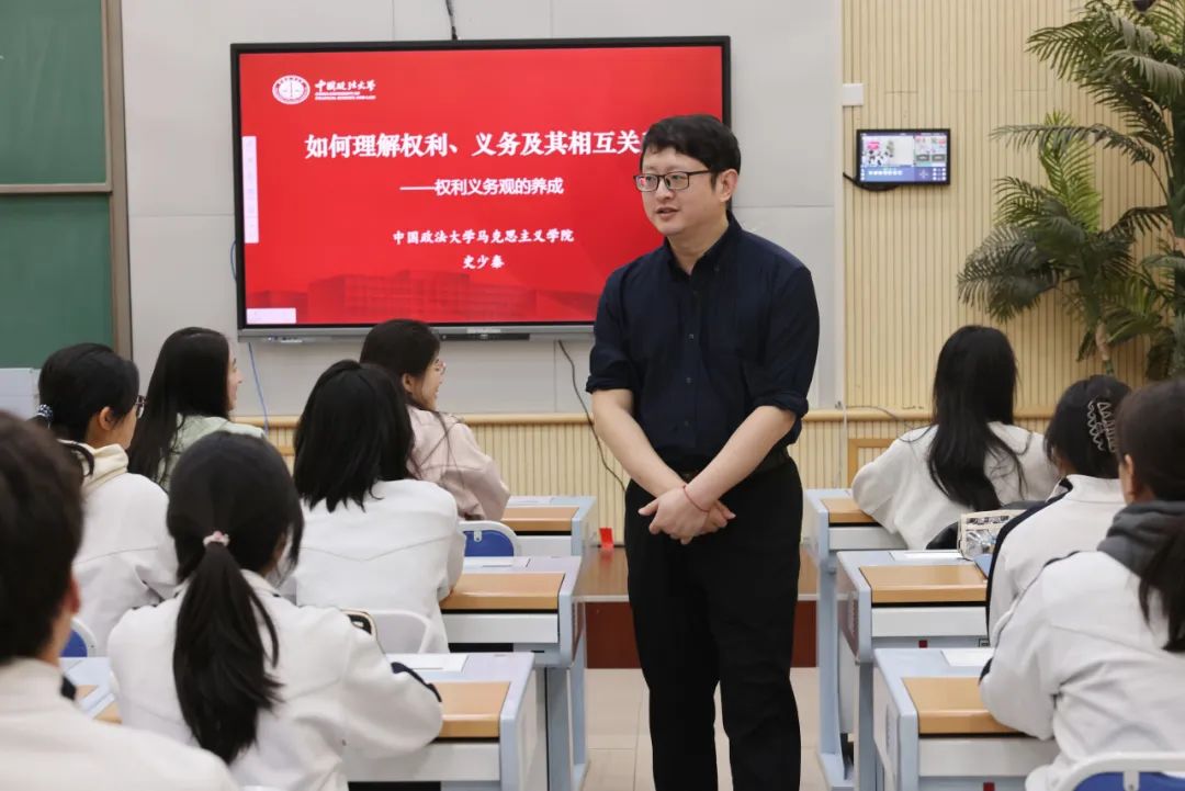 大学阶段的课程聚焦权利义务观培养法治思维。中国政法大学老师史少秦带来的思想政治理论课《依法行使法律权利与履行义务的思维和逻辑》围绕“如何理解权利、义务及其相互关系”展开,旨在启发学生学习马克思主义权利义务观,培养法治思维,提升法治素养。