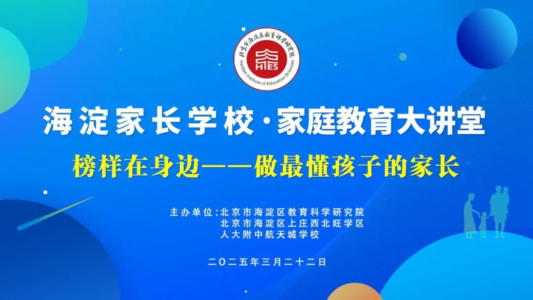 3月22日,为全面落实立德树人根本任务,广泛传播科学教育理念和家庭教育方法,树立海淀优秀家长榜样,发挥家校共育在学生成长过程中的重要作用,健全学校家庭社会协同育人机制,海淀教科院、上庄西北旺学区、人大附中航天城学校联合举办“海淀家长学校•家庭教育大讲堂”第九十一讲《榜样在身边——做最懂孩子的家长》。