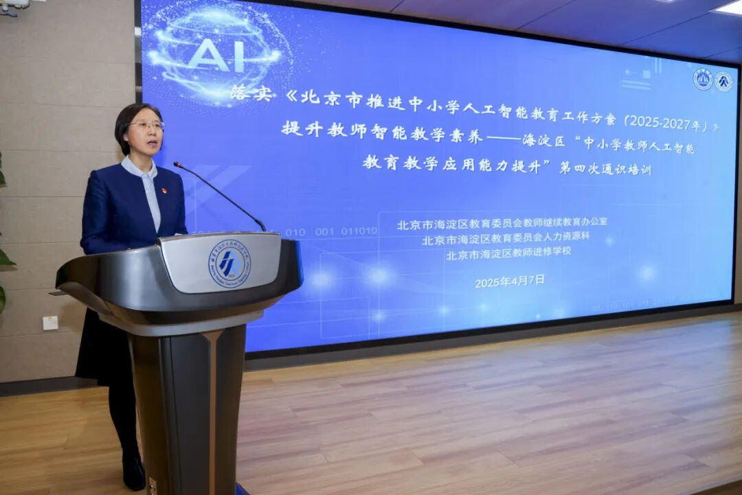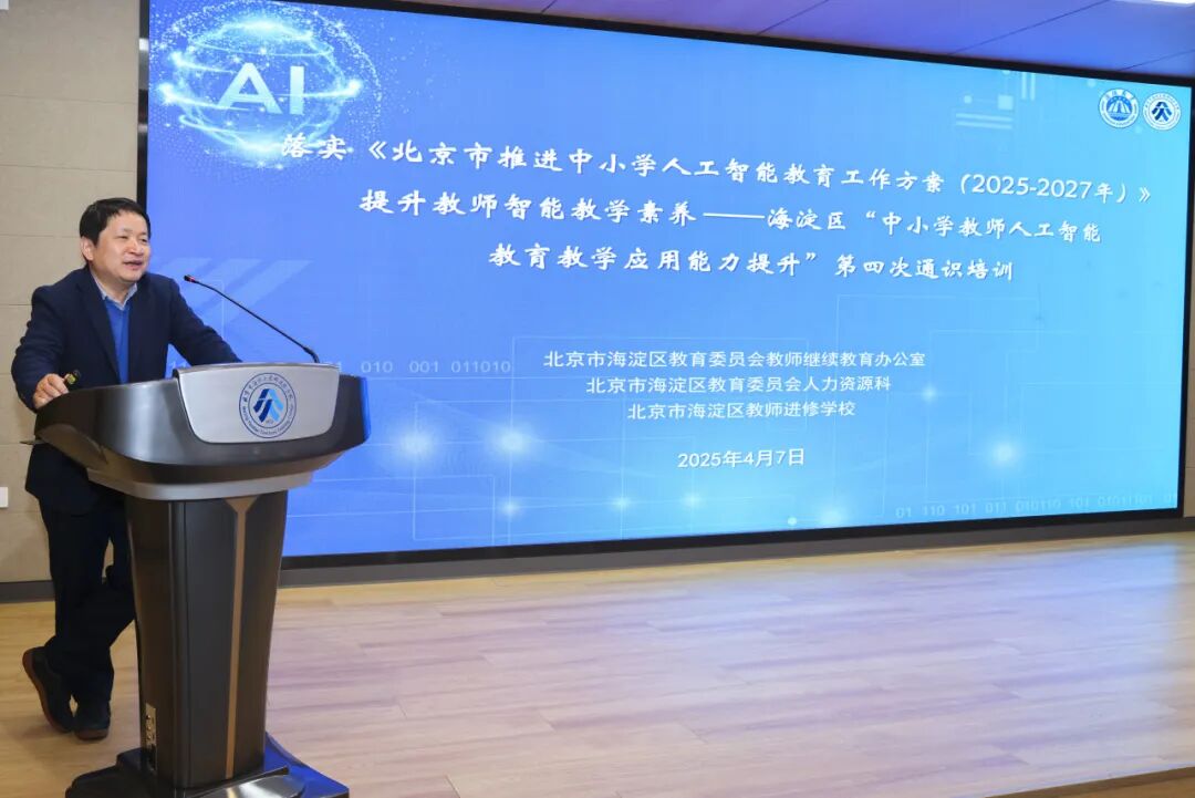 为深入实施国家教育数字化战略行动,落实《北京市推进中小学人工智能教育工作方案》,以及海淀区“抢抓人工智能赛道,实现人工智能占先发展”的战略部署,4月7日,海淀区“中小学教师人工智能教育教学应用能力提升”第四次通识培训在海淀区教师进修学校举行。培训由海淀区教师进修学校党委书记申军红主持。
