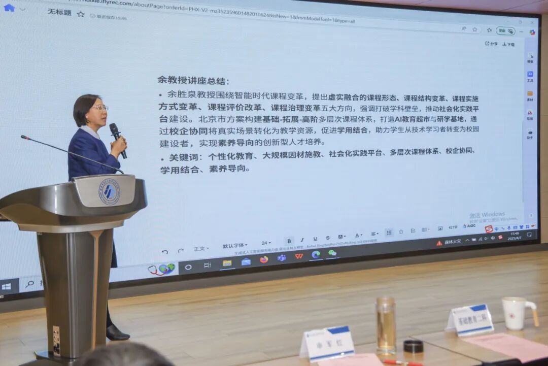 北京师范大学教授、北京师范大学未来教育高精尖创新中心执行主任余胜泉带来专题讲座。他以“智能时代未来学校课程变革”为题,提出了人工智能赋能学校课程变革的新路径,即课程形态强调虚实融合;课程结构强调跨学科整合;课程实施方式强调人机结合;课程评价强调发展性评价;课程治理强调基于数据。同时对《北京市推进中小学人工智能教育工作方案(2025-2027年)》的重点内容进行解读,强调“学用结合”,关注真实场景中的人工智能教育,将应用场景转化为教学资源,提高学生利用人工智能解决问题的思维品质和综合能力。