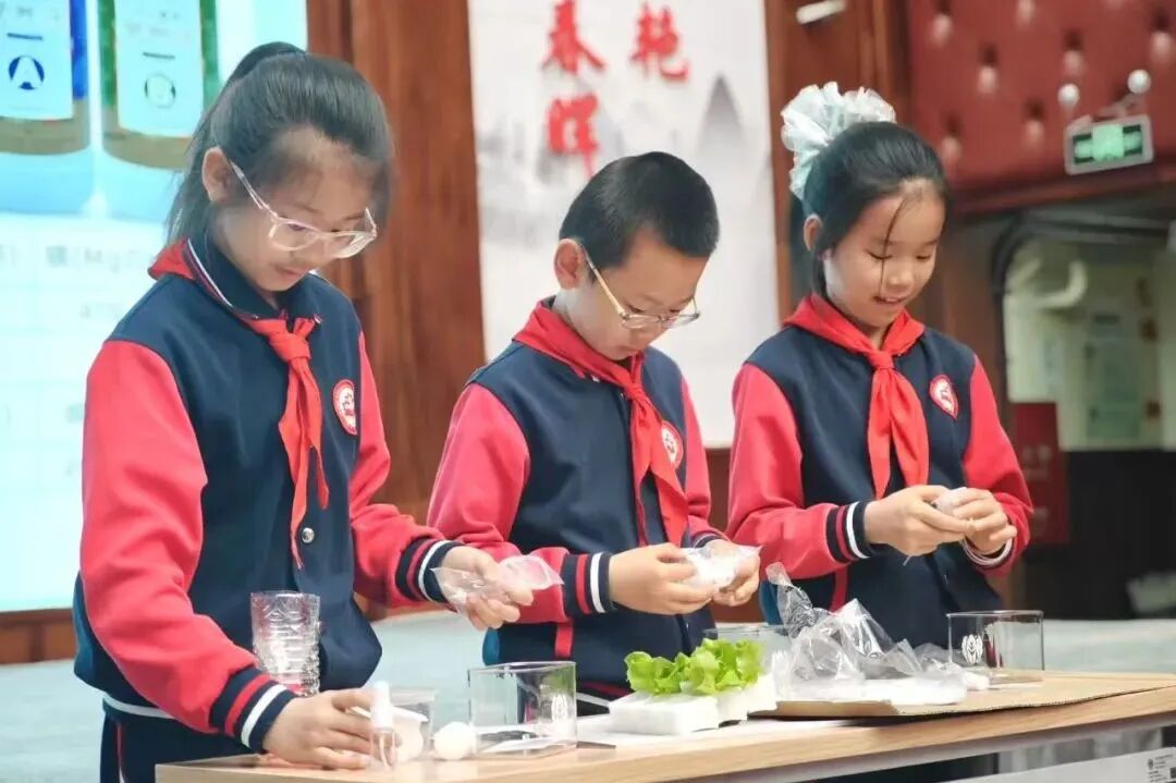 同学们投身 “绿野仙踪农场”,利用教室种植舱等设施,参与大田种植实践,学习《跟着二十四节气去劳动》课程,体验水培蔬菜,感受农耕智慧与植物生长奥秘。