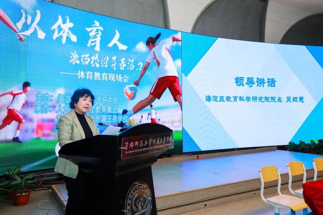 海淀区教科院院长吴颖惠表示,玉泉学校以排球班级联赛为小切口,向大家展示了“能出汗的体育课”和全员参与的“班级赛”,感受到了体育在激发学生运动兴趣、促进学生身心健康发展、培养团队意识等方面的作用。她希望,教师要站在培养担当民族复兴大任时代新人的高度,扎根体育课堂,用研究的思路探索科技赋能学校体育工作的新路径,科学促进学生体质提升,切实帮助学生在体育锻炼中享受乐趣、增强体质、健全人格、锤炼意志。