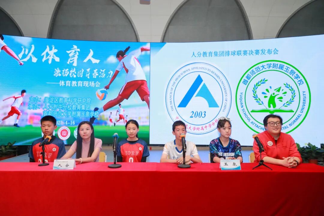 赛后,学校举办了一场别具一格的新闻发布会。运动员、教练员和啦啦队的师生代表分享了排球比赛带给他们的体验和感受,阐述了对体育精神的理解和思考。