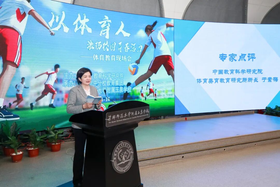 中国教育科学研究院体育美育教育研究所所长于素梅,对人分教育集团、首师大附属玉泉学校排球实践成果给予了高度评价,她强调,学校以排球为小切口,构建系统化、层次化的排球校本课程体系,高效实现“学、练、赛、评”一体化。既要夯实基础性课程,又要通过发展性课程满足学生个性化成长需求,真正实现体育的全员参与与因材施教的充分融合。希望学校能够继续深入探索体育育人新模式,为培养德智体美劳全面发展的社会主义建设者和接班人做出更多努力。
