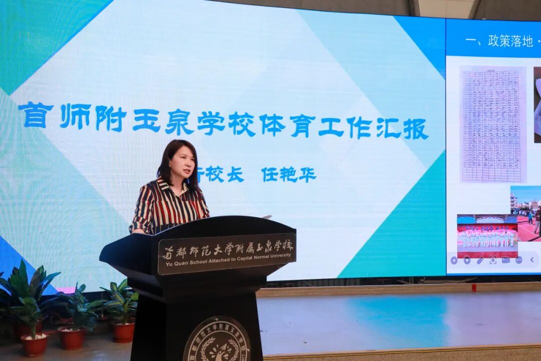 首师大附属玉泉学校执行校长任艳华从“政策落地,健康第一新作为;校本筑基,体育课程新发展;集团赋能,内涵提质新实践;稳步笃行,以体育人新样态”四个方面,详细解读了学校校本体育课程创新实践,系统展示“基础+拓展+发展”九年一贯体育课程体系。