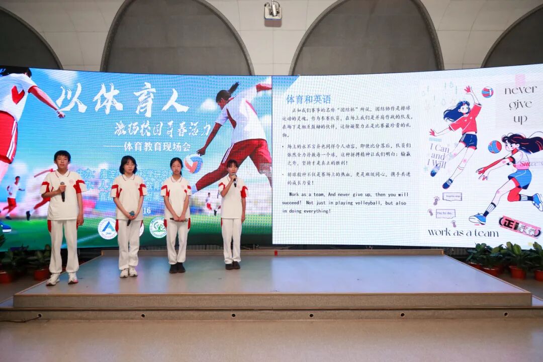 在跨学科学习成果展示环节,同学们介绍了体育与语文、英语、美术、信息技术等多学科融合的学习情况,打破了体育的学科边界,充分展示了学校体育育人的立体场域。