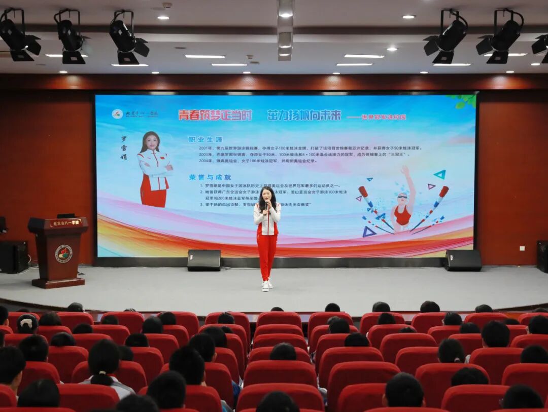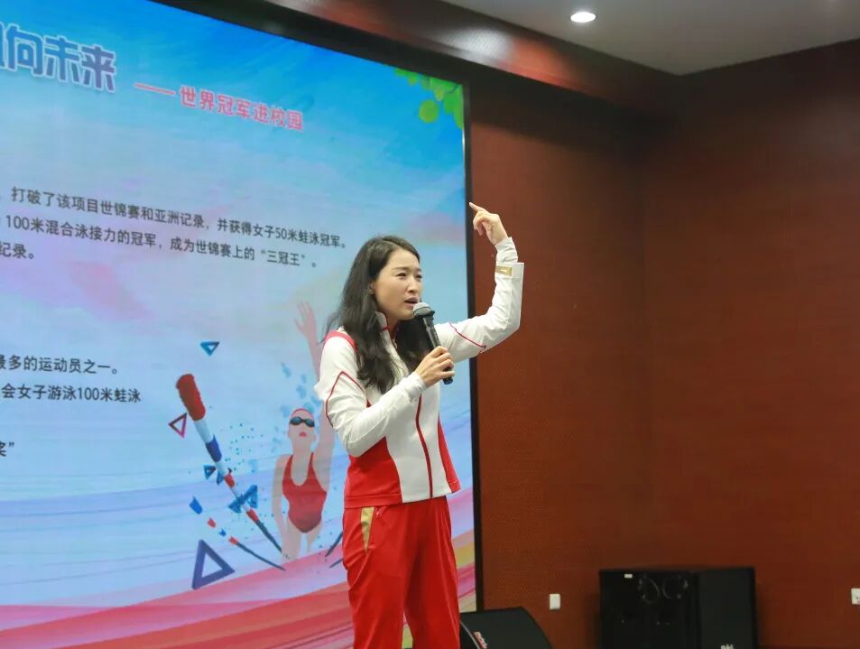 在近距离接触世界冠军环节,同学们认真聆听罗雪娟夺冠背后的故事,汲取榜样的力量。通过回溯个人成长轨迹,罗雪娟鼓励同学们在学习和生活中,要像在泳池中一样,勇敢地面对困难,坚持不懈地追求目标。