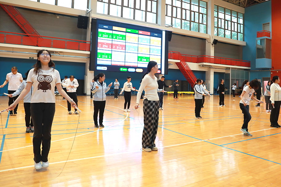 与此同时,教职工的跃动跳绳争霸赛正如火如荼进行中。他们不仅在课堂上传道授业,在运动场上也展现出卓越的风采。比赛采用人工智能大数据进行统计成绩,在体育教学中,同样引用了智能体育,助力体育教学课堂。