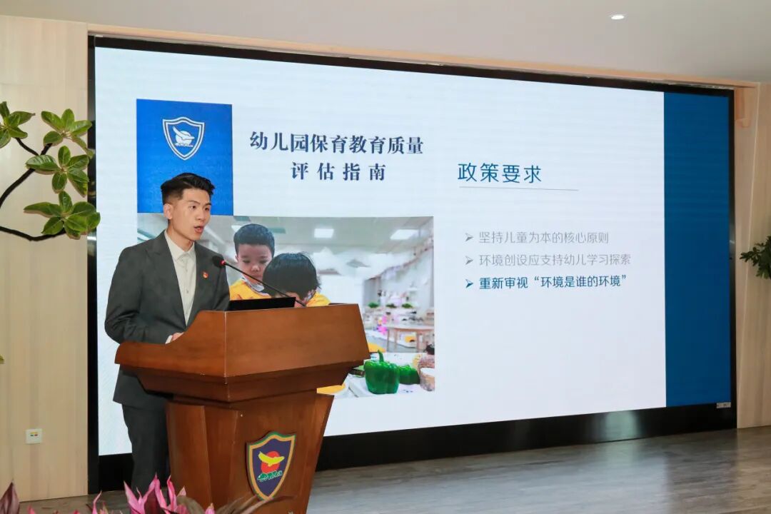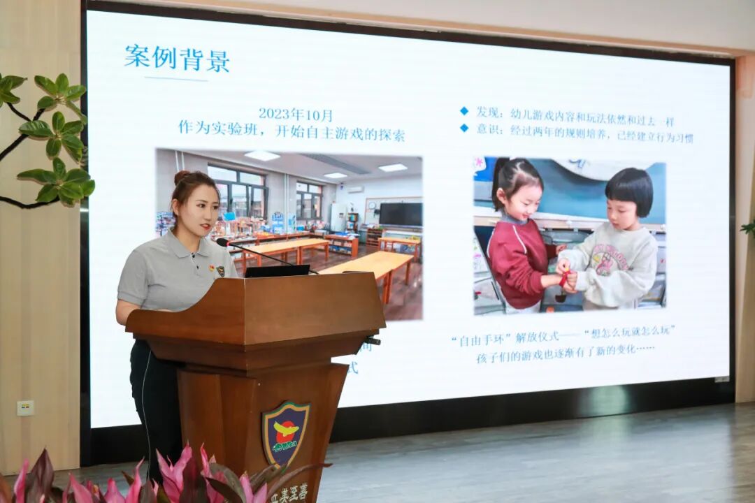 在园所经验交流环节,明天一幼园长佟磊以《站稳儿童立场》为题,分享了幼儿园在区级教研引领下,坚持以学为先、以思为基、以行为要、以研为导,通过空间的突破与整合、开设材料超市等做法,引发了一场关于材料与环境的系统变革,从而重构师生关系,让每一名幼儿都在开放、自主、支持的环境中自由探索、快乐成长。