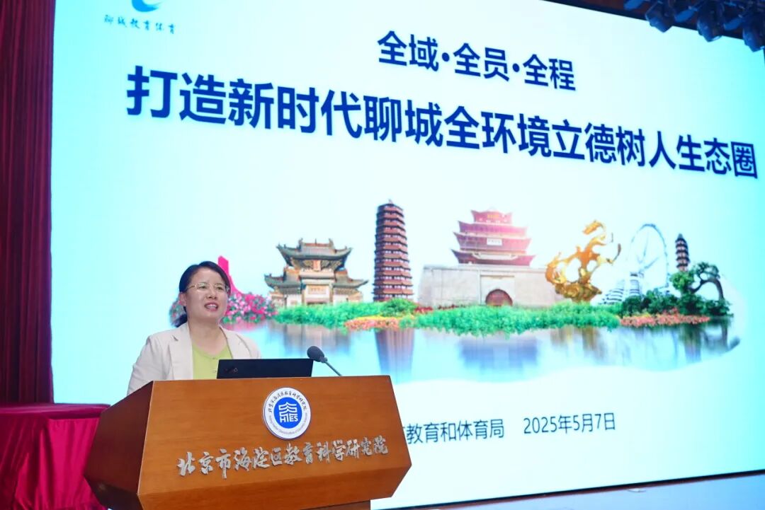朱宏锐以“全域·全员·全程——打造新时代聊城全环境立德树人生态圈”为题分享了聊城市德育工作和班主任队伍建设经验。