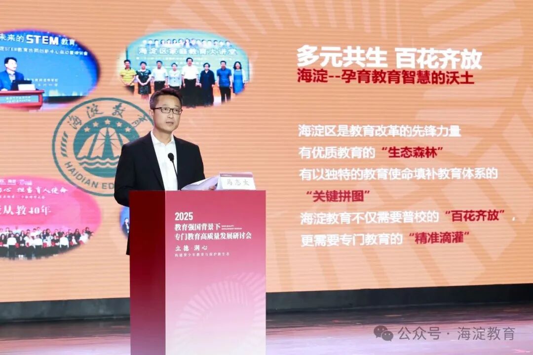 海淀区委教工委书记、区教委主任杜荣贞作主旨报告,从专委会建设、家校社协同、专门学校发展三方面分享了青少年教育与保护的“海淀经验”,提出海淀区专门教育专委会将通过区级协调统筹、各校因地制宜、专门学校兜底等保障举措,构建全方位、个性化的教育支持体系。海淀教育依托专门教育指导委员会,将继续发挥专门学校的育人职能,积极引导青少年的未来成长、成才。