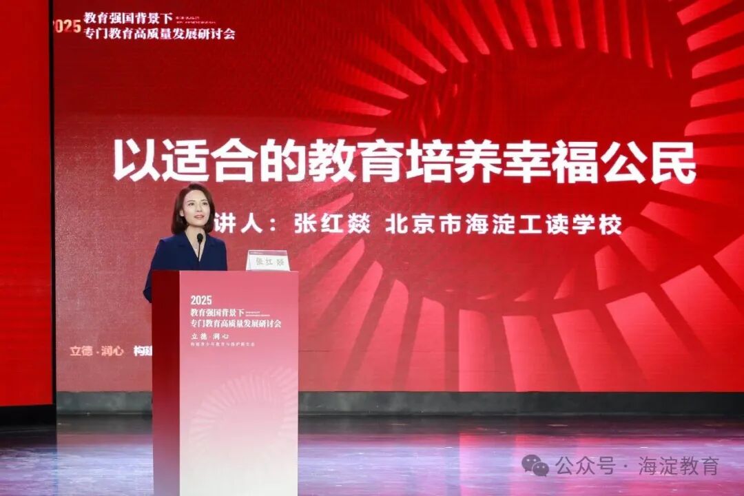 海淀工读学校校长张红燚介绍了海淀工读学校从“马卡连柯式集体教育”到“个性化矫治体系”的专门教育迭代历程。70年来,一代又一代海淀工读人的坚守、担当和付出,积淀了宝贵的实践经验与育人智慧。面对新的教育形势,她解读了“以适合的教育培养幸福公民”的使命源起、实践路径和未来发展方向,表示学校要在预防未成年人违法犯罪、促进青少年健康成长方面继续躬耕,努力让每一个孩子都能成就自己的幸福人生。