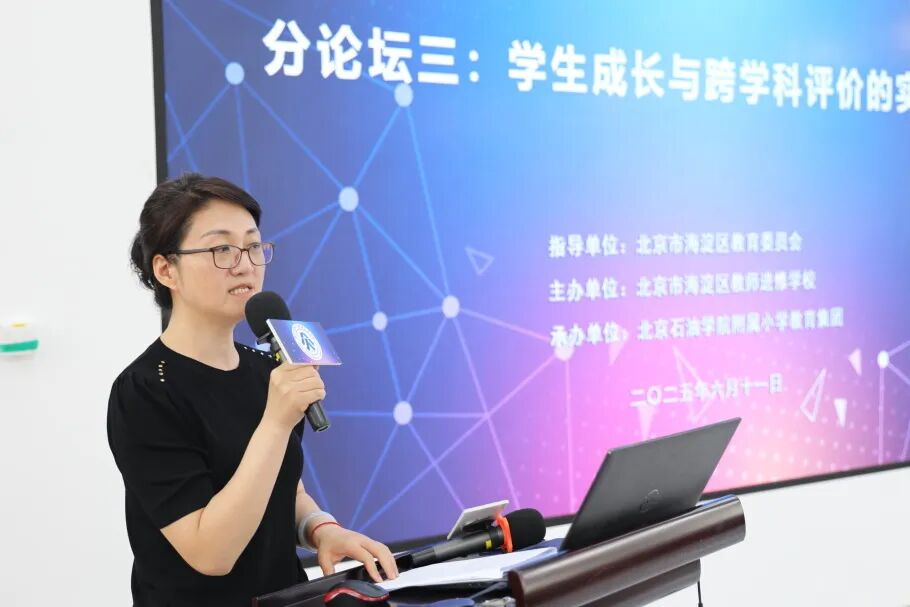 本论坛由海淀教师进修学校教研员梁静主持。石油实验小学田萍萍分享了学校在跨学科主题学习中成长导向的评价体系是如何构建的;首师大实验小学吕圣娟介绍了学校在跨学科主题学习中评价的设计与实施;首师大附属定慧里小学孙宇以“文化筑基 素养铸魂”为主题,介绍了跨学科学习中素养评价的创新实践。