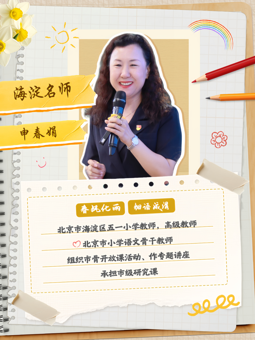 海淀,这片孕育教育硕果的厚土见证着一位位名师的风采,他们以匠心精神深耕讲台,用专业底蕴启迪智慧,凭赤诚之心托举未来,他们是知识的摆渡者,更是精神的引航人,下面让我们一同走进海淀区“未来名师成长计划”系列活动,申春娟老师教育教学研讨会,感受那份引领方向的教育之光。
