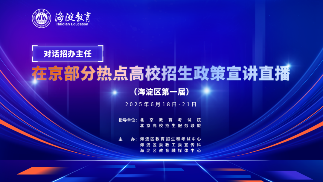 这也是针对高考志愿填报,海淀区举办的首届在京部分高校招生政策宣讲工作,旨在让考生家长熟知各高校的招生政策、招生亮点和投档录取规则等信息,为考生家长选择心仪的高校和专业提供助力。直播宣讲活动每天邀请四所在京高校做客直播间,带来学校最为权威的高招政策解读!