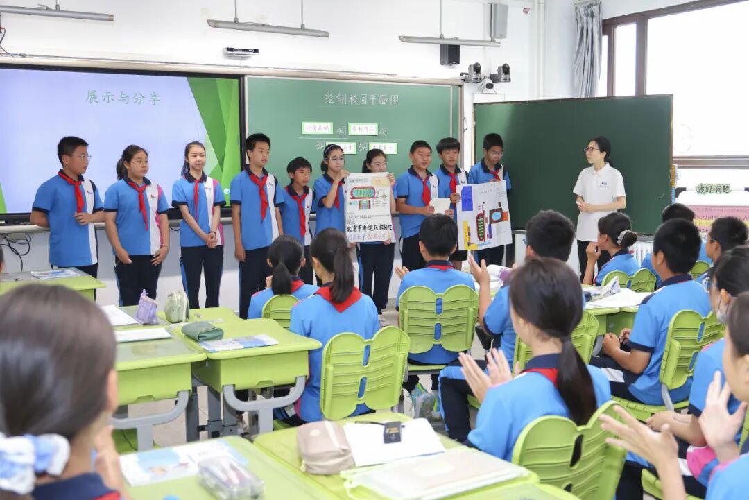 学校首先通过四节精彩的展示课,让参会嘉宾全面感受学校AI赋能课堂的实践探索与成效。学校教师宋欣雨执教二年级语文课《中国美食》,王昊执教六年级语文课《真理诞生于一百个问号之后》,田静执教《奇妙的密铺》,张琦带领学生“绘制校园平面图”。4位老师通过人工智能赋能课堂教学,展现了教与学方式变革的生动探索。