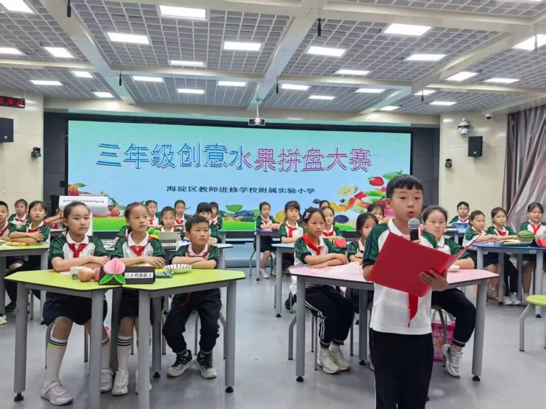 海淀区星火小学以“智劳动 慧创新” 为主题开展了劳动实践比赛,此次比赛以水果拼盘为载体,用创意与双手奏响劳动乐章,小选手们分工明确、配合默契,灵巧的双手将缤纷水果化作蝴蝶、花朵等造型,这场比赛不仅是技能的比拼,更是成长的阶梯,让劳动与创新的种子在成长路上绽放。
