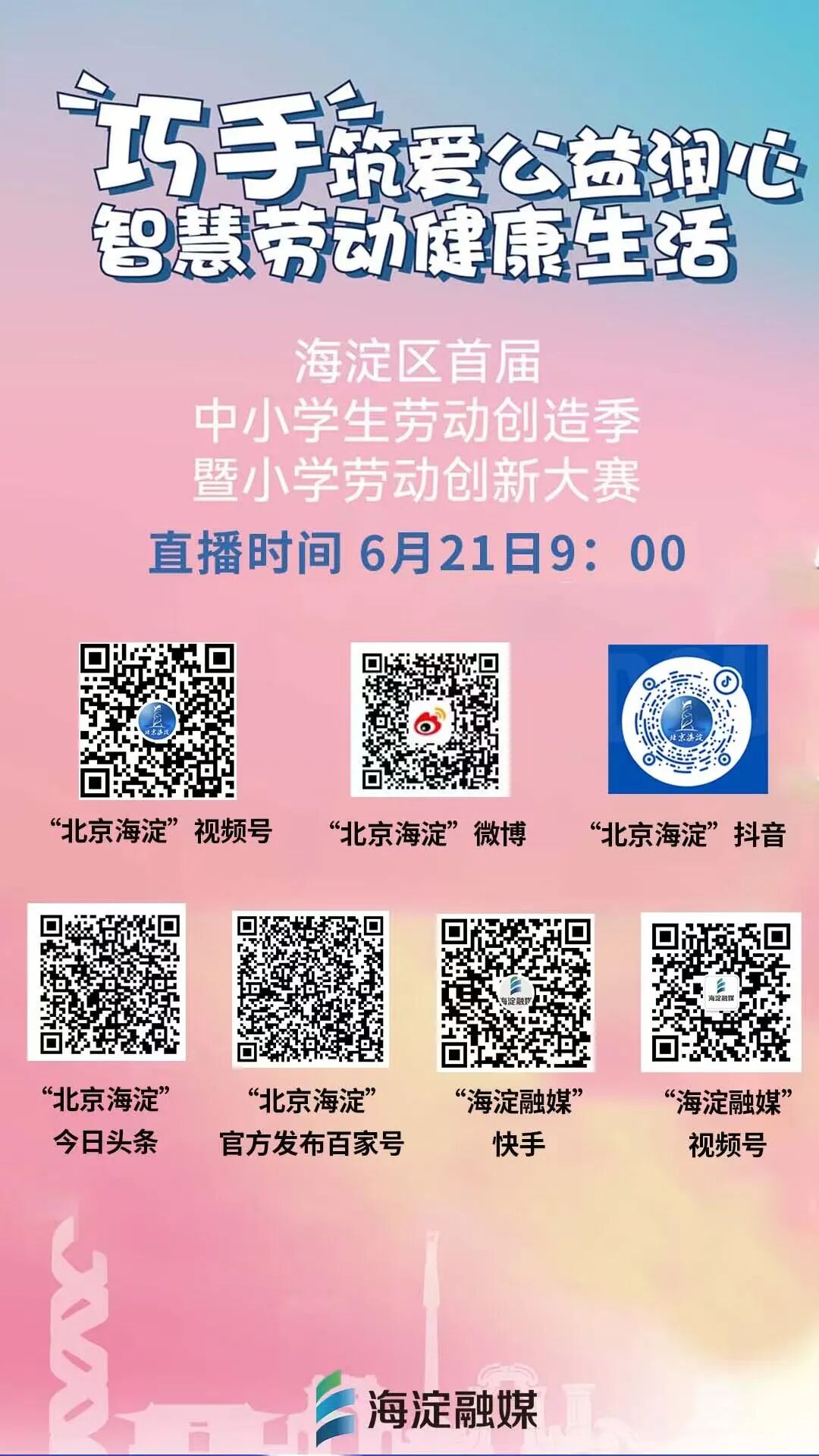 明日(6月21)日上午9:00-11:30将进行区级决赛,届时,海教融媒抖音号、快手号、海淀教育视频号、抖音号、海角君微博、北京市海淀区政府官方微博、北京海淀视频号、北京海淀抖音等平台将进行现场直播,欢迎收看。