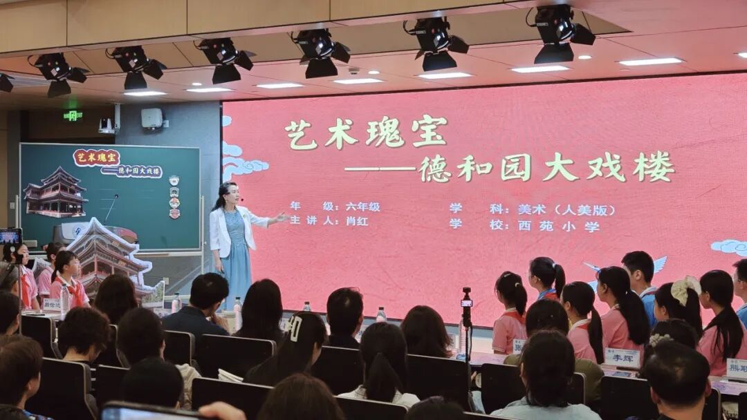 西苑小学副校长谈兵在讲话中表示,本次现场会的召开,不仅是对肖红老师数十载从教生涯的致敬,更是对美育事业的一次深入探索与展望。这既体现了海淀区委教育工委、区教委对西苑小学办学实践的认可、对教师成长的激励,也表明了二者在教师队伍培养、推动教师迈向优秀与卓越发展理念上高度契合。她希望大家能共同努力,让每一间教室都绽放出艺术之花。