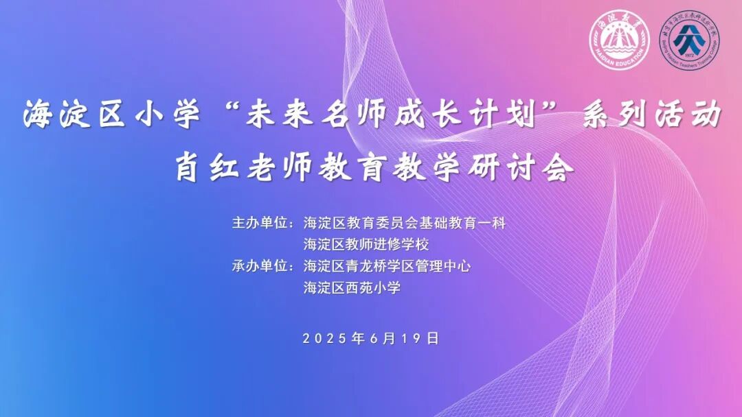 为大力弘扬教育家精神,进一步推进海淀区美术课程改革,发挥骨干教师教学示范、教研带动和学术引领作用,海淀区教育委员会基础教育一科与海淀区教师进修学校联合举办了海淀区小学“未来名师成长计划”系列活动——肖红老师教育教学研讨会。北京市各区美术教研员,海淀区各学区、学校教学干部、骨干教师以及各校一线美术教师,共同参会。