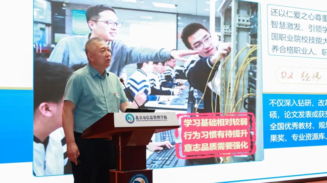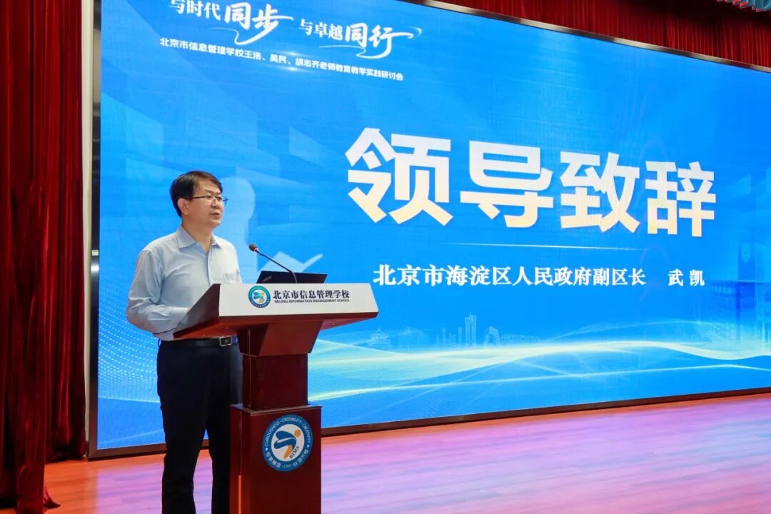 近日,海淀职业教育名师教育教学实践研讨会在北京市信息管理学校举行。本次研讨会聚焦职业教育领域,回顾北京市信息管理学校王浩、吴民、胡志齐三位名师扎根职教、匠心育人的成长经历,探讨新时代人工智能+背景下职业教育高质量发展的路径与方向。众多职业教育领域专家、学者以及一线教师齐聚一堂,共同分享经验、交流心得。会议由区委教工委副书记吴谨主持。