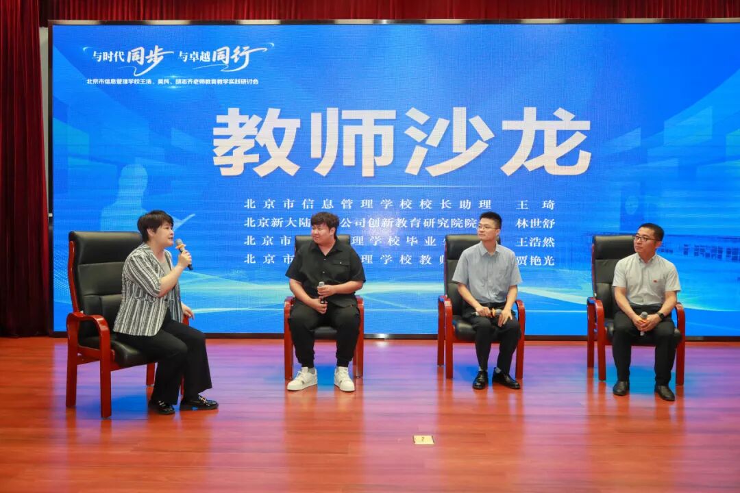 沙龙环节,北京市信息管理学校校长助理王琦带领师生及企业代表,以《同步•同行——动力之源》为主题,围绕职教名师如何培养未来高素质人才进行分享交流。他们表示,情怀、融合、创新,是职教名师背后的密码,职业教育的特色是产教融合、校企合作,也是职业学校育人的生命线。希望大家能够紧密对接市场需求,培养出更多适应新时代发展的高素质技术技能人才。