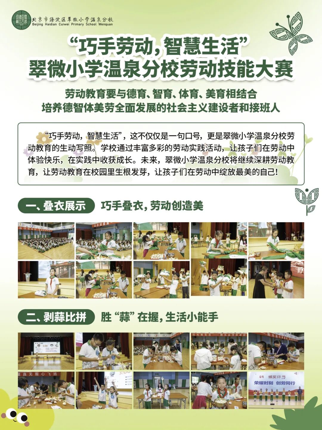 前几期,我们一同见证了首届中小学生劳动创造季暨小学劳动创新大赛现场单项竞赛的精彩盛况,也探访了场外劳动成果展示的热闹现场,深切感受到海淀学子迸发的奇思妙想,今天,让我们再次循着大赛的足迹重温那些充满活力的瞬间,一同体验劳动中蕴藏的无限乐趣。