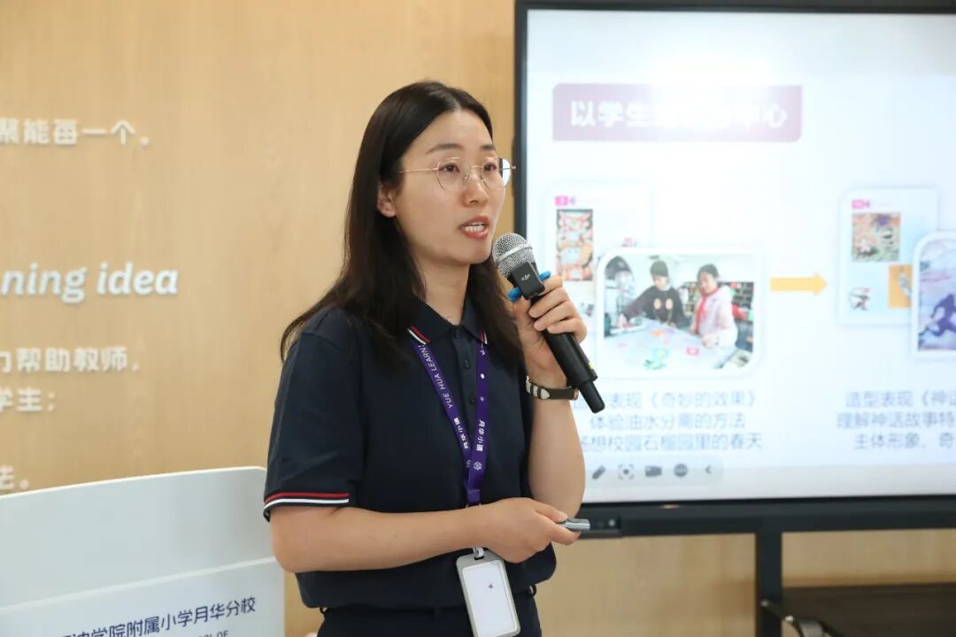 一年级部邓飞老师以《学习就是打开生活的方式》为题,讲述团队在月华“学习即生活”理念下的实践。6名全科教师进行“全天候陪伴”,超越学科边界,将学习融入日常点滴。一年级全科教师张慧久老师以《激励学生,激发超能力》为题,分享了一年级部探索学生激励机制的实践。英语教研组长陈丹老师以《以言启光,聚能成海》为题,分享了英语组探索学科实践的历程。课程中心巩伟老师以《课堂如何实现每一个》为题,讲述学校课程的故事,教师们通过逆向设计课程,拆分课标,深度研究学生优势与潜能,为学生量身定制专属课程资源与成长路径。