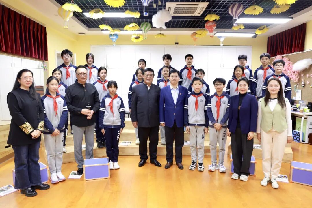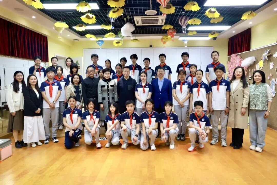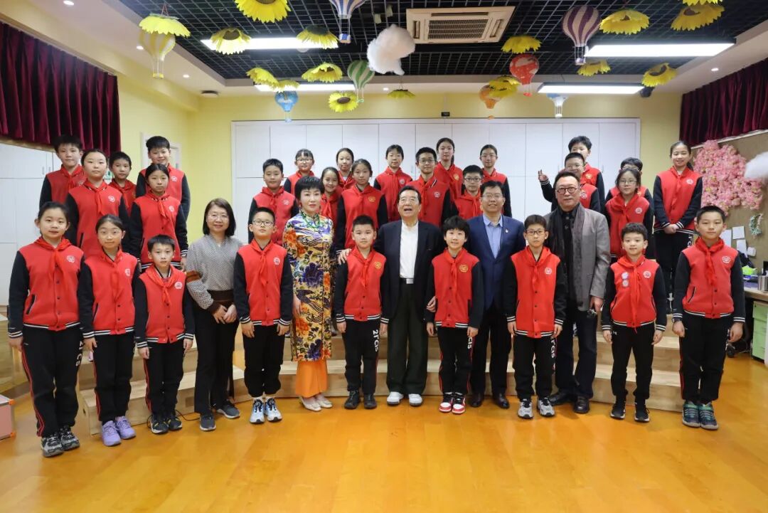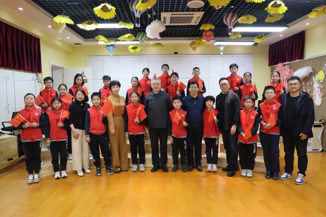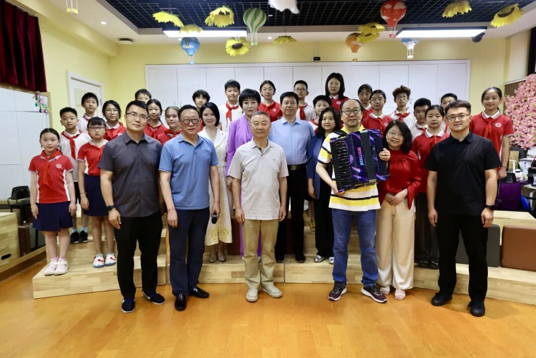 原总政歌舞团合唱团著名手风琴演奏家——张红星老师与刘炽炎老师一起,为同学们带来一堂生动的艺术思政课。刘老师从解析《强国有我》的歌词入手,对孩子们说“歌词里的小树与花朵,就是你们的写照,生长在这个时代的少年,终将肩负起未来的责任。”张红星老师现场拉起手风琴,带领同学们徜徉在激荡的豪情中。“我们是伟大复兴的接力者,我们是未来时代的创造者,强国有我!”孩子用铿锵有力的歌声抒发着远大的志向。