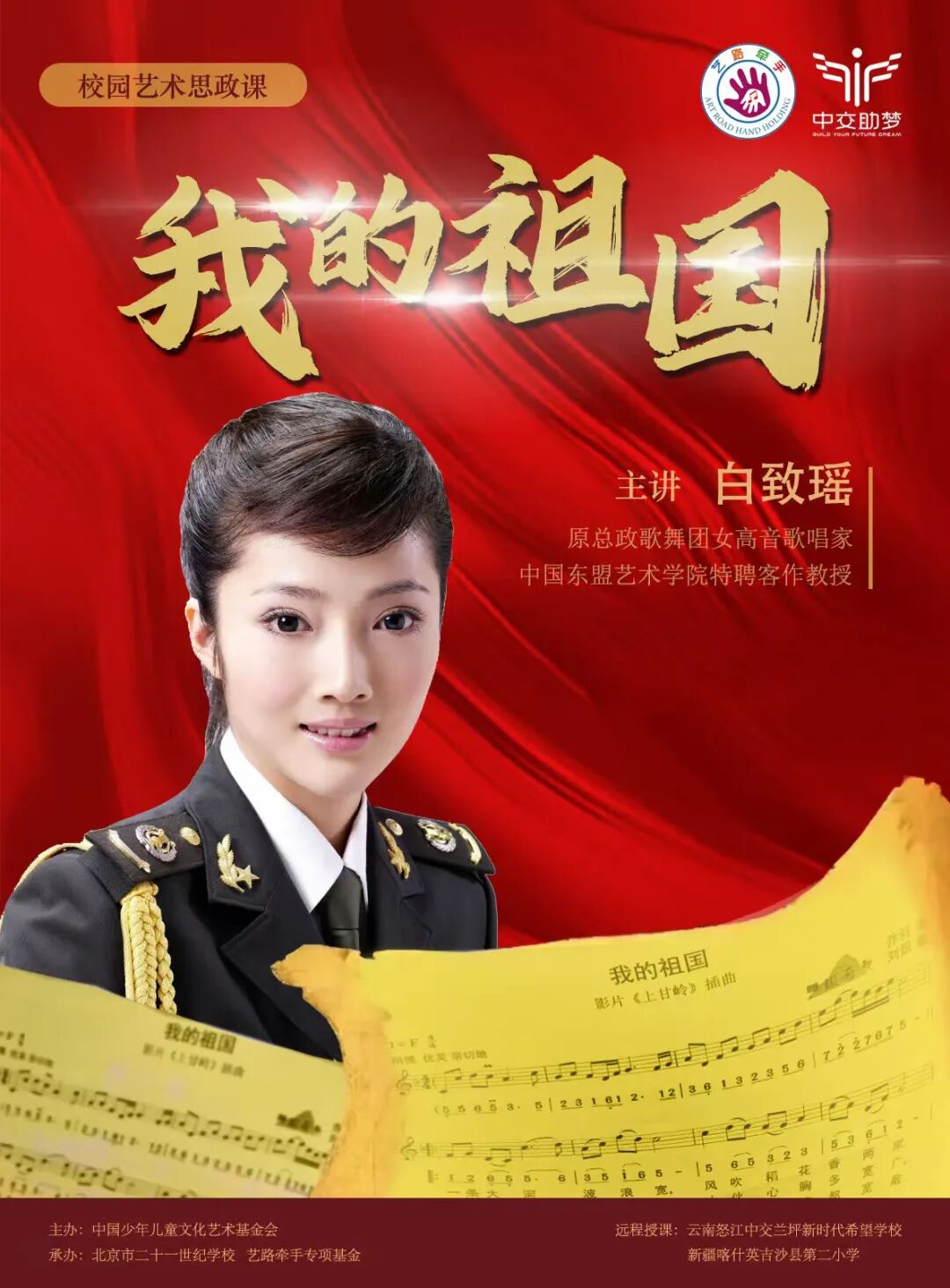 原总政歌舞团女高音歌唱家、中国东盟艺术学院特聘客座教授白致瑶老师,以影片《上甘岭》的插曲《我的祖国》开讲。歌词里祖国的好山好水好地方、风吹稻花香两岸蕴含着对祖国深深的眷恋,寄托着人们对和平生活的向往。但“若是那豺狼来了,迎接它的有猎枪”也抒发着人们抵抗外敌的坚定决心和顽强毅力。白致瑶老师带领孩子们品味歌词字里行间蕴含的中华民族坚强不屈的精神,希望孩子们珍惜今天来之不易的幸福生活。