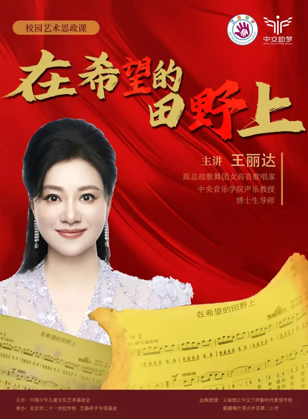 1978年,中国迈入改革开放的新纪元。原总政歌舞团女高音歌唱家、中央音乐学院声乐教授王丽达老师,带着《在希望的田野上》这首歌,走近同学们。这首歌是总政歌舞团著名歌唱家的代表作,承载着改革开放的集体记忆,传递出人们对生活的热爱和对未来的憧憬,充满蓬勃生机。在解读歌曲中,王丽达老师勉励大家:“无论未来走得多远,都要心怀家国,学成报效祖国,做社会主义的建设者和接班人。”