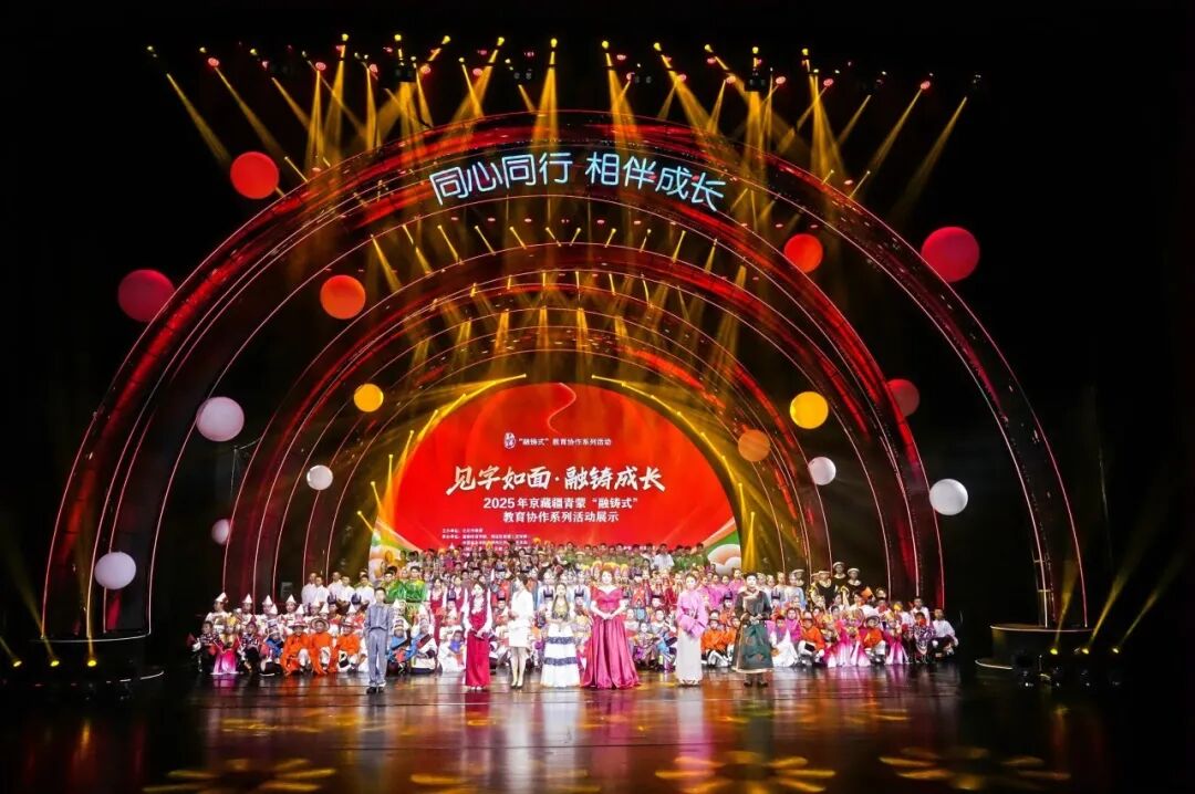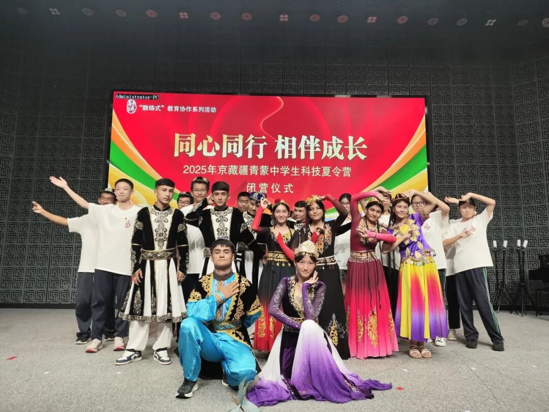 当晚,营员们在北京艺术中心歌剧院观看了由京藏疆青蒙五地学生联袂献艺的民族舞蹈晚会。晚会以“科学有光,明亮双眼”、“相伴成长,携手筑梦”等铿锵宣言呼应科技主题,彰显了各地学子在本次活动中的深度交融与深厚情谊。这场跨越山海的青春相聚,汇聚成民族团结的蓬勃力量,共同描绘强国有我的宏伟篇章!