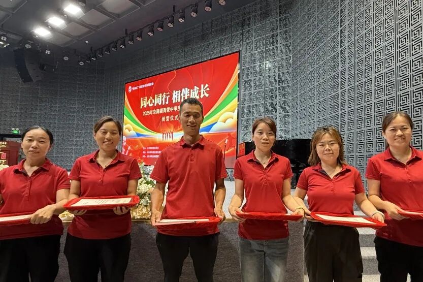 下午,活动转场至颐和园。在新疆的同学们完成游览活动后,京疆两地学子随即投入闭营仪式的排练中。当晚,闭营仪式隆重举行。无人机编队率先登场,以流光溢彩的空中造型点燃现场;大屏幕回溯夏令营点滴,欢笑与感动交织成温馨长卷。在《青春舞曲》与《如愿》的悠扬旋律中,歌声传递着青春朝气与真挚心愿。“见字如面”环节温情满满,书信搭建起友谊桥梁,字里行间流淌着对民族团结的深刻感悟。海淀区教委副主任赵霞亲手为每一名营员颁发荣誉证书,并深情寄语同学们团结奋进、友谊长存。最后京疆两队学生共舞麦西来普(维吾尔语中意为“集会”“聚会”),在欢快节奏中定格珍贵回忆。全场以大合照为活动画上圆满句号。从无人机光影到民族舞蹈,从书信传情到歌声共鸣,这场仪式成为民族团结与青春梦想的交响乐章。