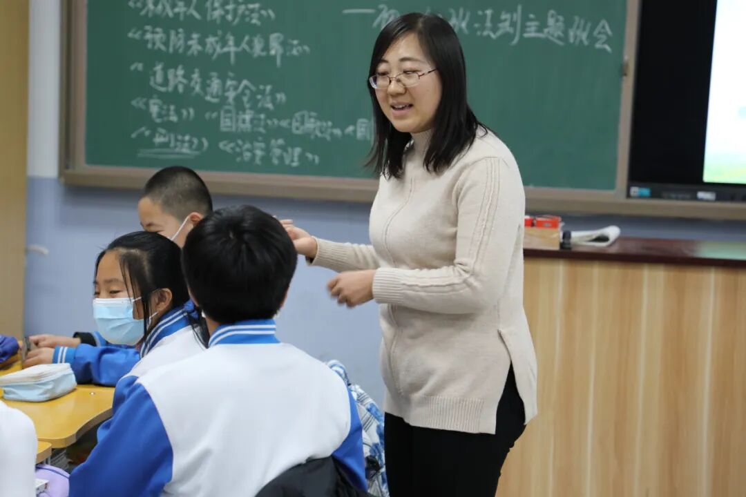 她还引导学生用行动表达对老师的关爱,例如教师节期间,同学们手工制作节日卡片、折纸花等送给老师们,以示对老师的祝福与感恩之情;12月被同学们定为“感恩教师月”,他们为每一位老师送上惊喜,在黑板上手绘对老师的祝福,并精心制作感谢老师的视频,在年级中引领了尊师重道的活动风潮。元旦联欢期间,他们会为每位老师手写邀请函,并送上一袋小礼物,表达对老师的新年祝福。师生之间的关爱之情形成了良性的互动,双向奔赴的爱让师生们都感受到了幸福。
