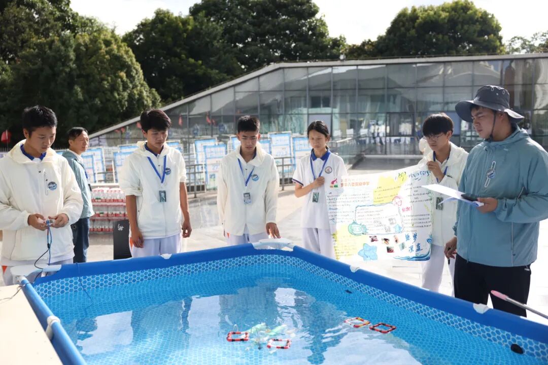 “逐梦工坊” 作为活动的科技实践核心,聚焦水下机器人(ROV)设计与挑战。参与团队需在限定时间内完成 ROV 的设计、组装与调试,先后攻克 “检测浮漂布放” 核心项目与 “抚仙湖水样采集” 即兴挑战。从技术报告撰写到海报设计,从水下精准操作到团队协作展示,同学们在理论与实践的碰撞中,将学科知识转化为解决实际问题的能力,展现了新时代青少年的创新思维与工程素养。