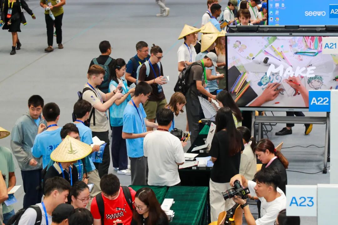 在展会现场,不少互动体验环节也吸引了大量中学生驻足参与。网易有道的词典笔、快手的可灵生成AI、小米生态链的智能体验产品,受到学生热烈欢迎。而在心理健康科技专区,心言集团的3D心理沙盘、汉王科技的仿生鸟等,关注学生的情绪管理与心理健康。