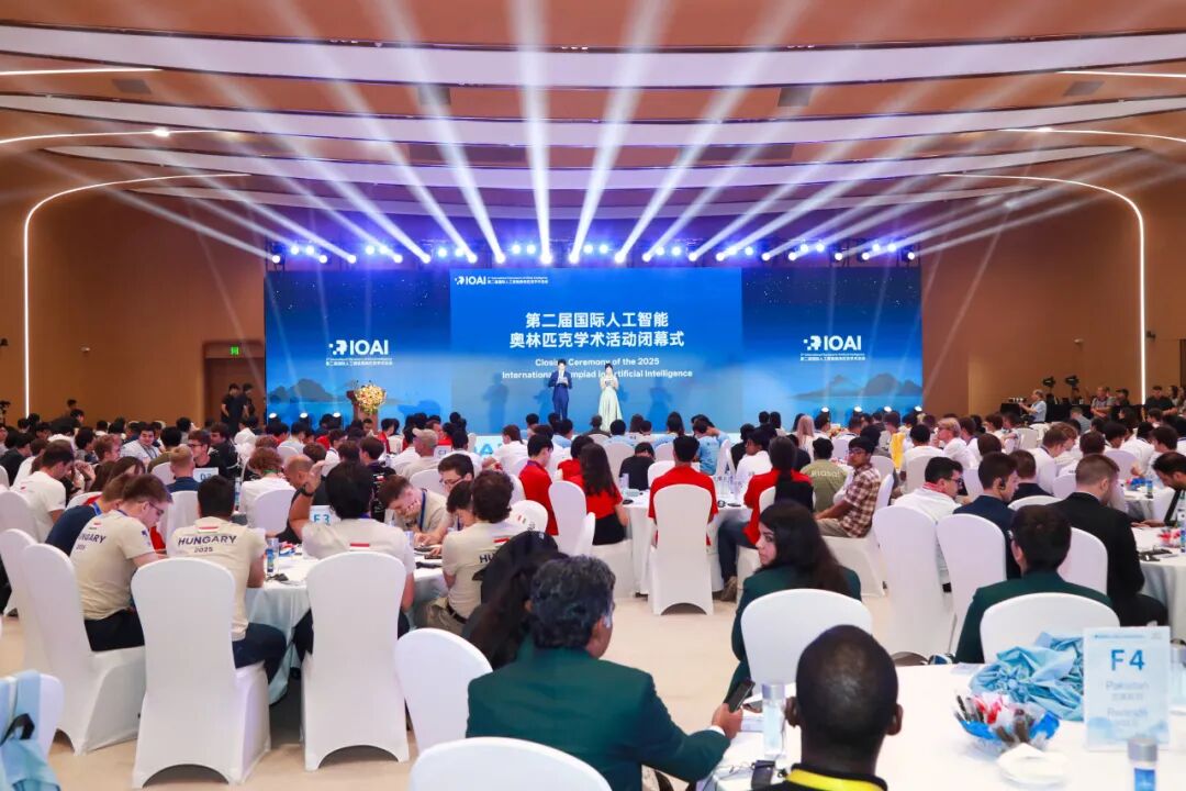 北京,2025年8月8日,庄严的IOAI会旗交接仪式在北京市海淀区中关村国际创新中心举行,标志着第二届国际人工智能奥林匹克学术活动(IOAI)圆满落下帷幕。