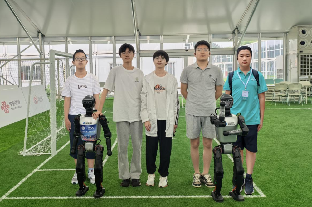 这支由5名初高中学生组成的队伍,平均年龄15岁,是整个赛事中最年轻的团队。他们带着3台加速进化Booster T1机器人参加了3v3机器人足球赛,与北京信息科技大学、中国矿业大学等大学高水平成年运动员同场竞技,充分展现了青少年身上的科技热情与成长力量。