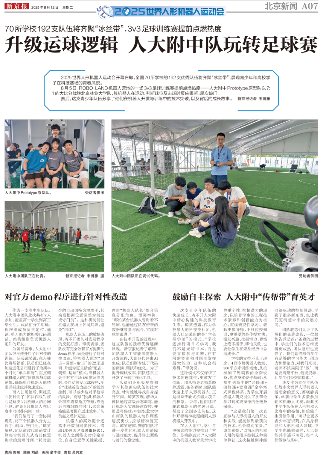 在8月5日一场3V3的足球训练赛中,团队曾以7比1大比分战胜北京林业大学队。尽管最终止步预选赛,队长谭笑表示,能接触一流的技术,能和大学的学长学姐学习交流,还跟来自德国、荷兰等地的国际队伍一起聊天互动……这段时间已经收获了很多。