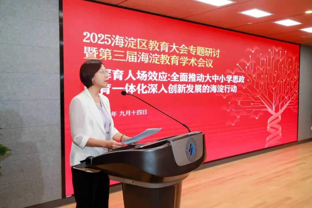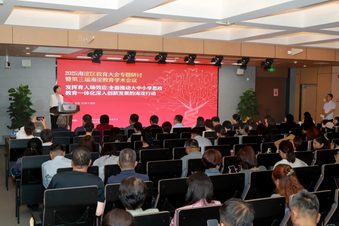 9月14日下午,2025海淀区教育大会专题研讨暨第三届海淀教育学术会议拉开帷幕。在“发挥育人场效应:全面推动大中小学思政教育一体化深入创新发展的海淀行动”第二分会场上,与会嘉宾共同探寻区域思政教育一体化推进的“海淀方案”,擘画区域思政教育新格局,为培育担当民族复兴重任的时代新人汇聚磅礴力量。海淀区委教工委副书记吴谨,区纪委监委派驻海淀教工委区教委纪检组组长张玉磊,部分中小学书记、校长代表,思政中心教研员,大中小学思政课一体化带头人,24个共同体负责人及全区中小学负责思政工作的校级领导参加研讨。海淀区教师进修学校党委书记申军红主持研讨会。