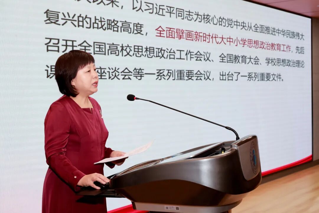 在交流发言环节,四位发言人分别从思政教育的纵向贯通、横向融通、主体联通和学用互通进行分享交流,与主旨报告形成印证。