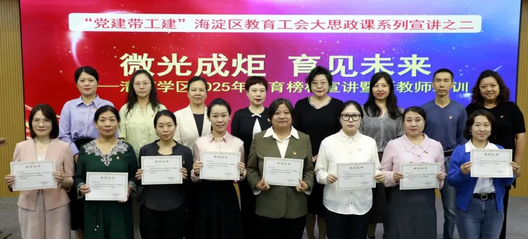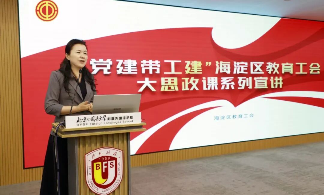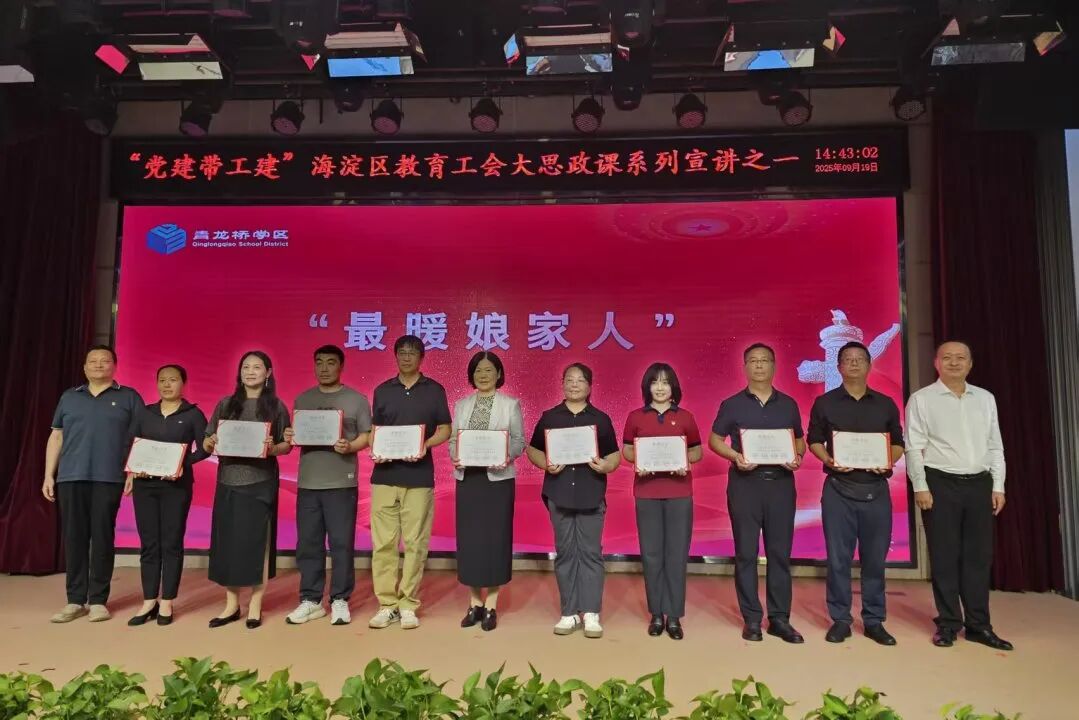 近日,“党建带工建”海淀区教育工会大思政课系列宣讲在各学区持续进行。作为区教育工会“党建引领工建”的生动实践,以及劳模精神传承宣讲展示的重要组成部分,活动以学区为单位,聚焦优秀教师事迹,切实推动将海淀区教育大会精神转化为一线育人实践,将大思政教育与师德师风建设、教职工职业道德建设深度融合。