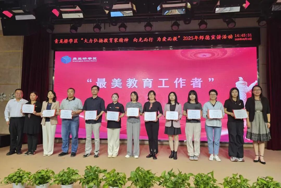宣讲结束后,青龙桥学区管理中心对在教育教学、思政育人及团队引领中表现突出的200余名干部教师,分别授予青龙桥学区“优秀教育领航者”“最暖娘家人”“最美教育工作者”等荣誉称号,鼓励学区广大教师学习榜样,见贤思齐,共同奋进。