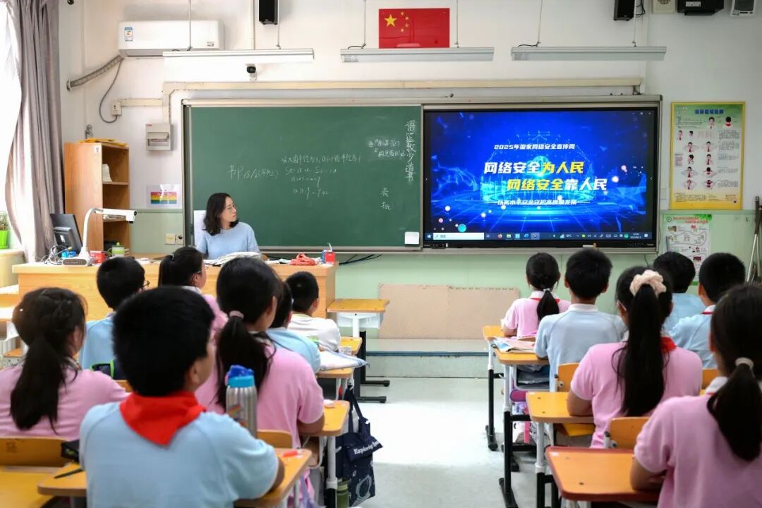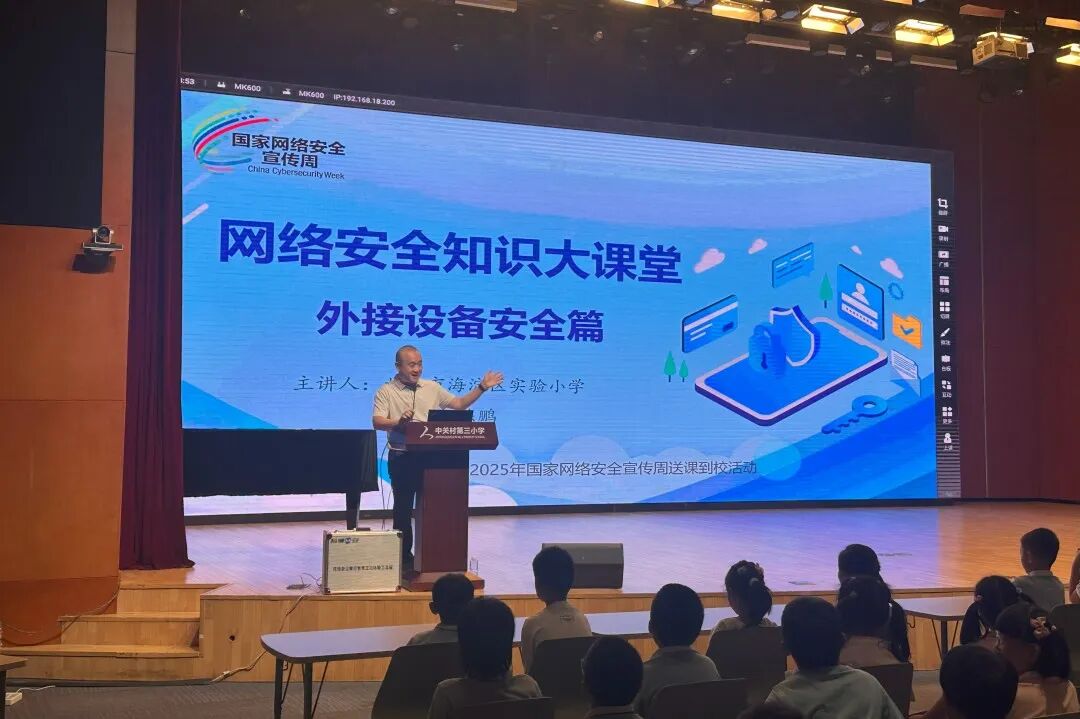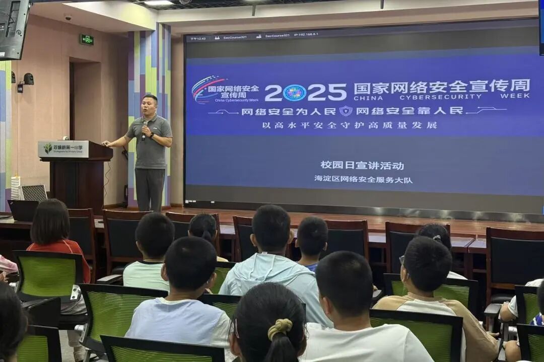 2025年国家网络安全宣传周期间,受北京市教委信息化处委托,海淀区教育系统网络安全服务大队的老师们分为九个小组,以“做AI安全与隐私保护的安全小卫士”为主题,至三个区9所学校送课十余节,近两千余名同学至现场或通过视频方式,参与了网络安全互动体验课。