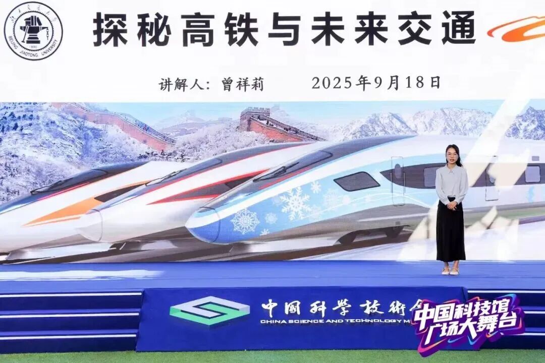 在科学演讲中,北京交通大学博士梳理了中国铁路140余年的发展历程,向同学们讲述了中国高铁从“和谐号”到“复兴号”,突破国外技术垄断与供应链短缺困境,实现从“跟跑”到“领跑”的逆袭。