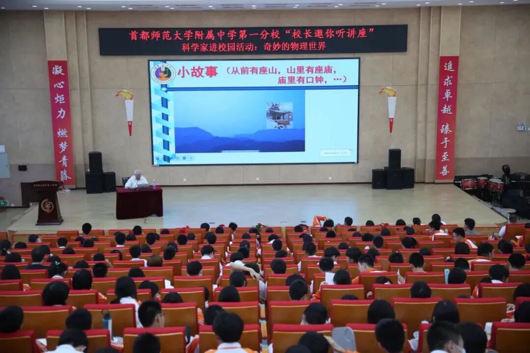 学校邀请了清华大学老科协科普演讲团成员、年逾八旬的邓新元教授,为初二年级全体学生带来了一场别开生面的《奇妙的物理世界》科普讲座。